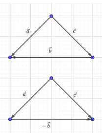 1) Пусть некий вектор \(\vec{c}\) удовлетворяет равенству \(\vec{a} — \vec{b} = \vec{c}\), тогда \(\vec{a} = \vec{c} + \vec{b}\).