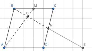 1) Рассмотрим треугольник ΔABE. Поскольку точка E является пересечением диагонали AC и прямой, проведенной через точку B параллельно CD, то \(E = AD \cap BN\) и \(DN = \frac{1}{2} \cdot AB\).