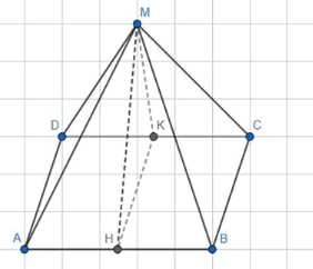 — Высота пирамиды — расстояние от вершины M до плоскости основания ABCD, то есть MH.