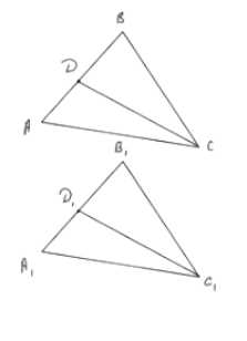 3. На сторонах AB и A1B1 отмечены точки D и D1 соответственно, такие, что ∠ACD = ∠A1C1D1.
