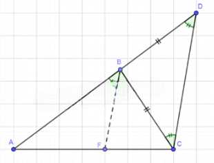 - Углы ∠BDC и ∠DCB равны, а также ∠ABF = ∠CBF. Следовательно, углы ∠BDC и ∠ABF равны.