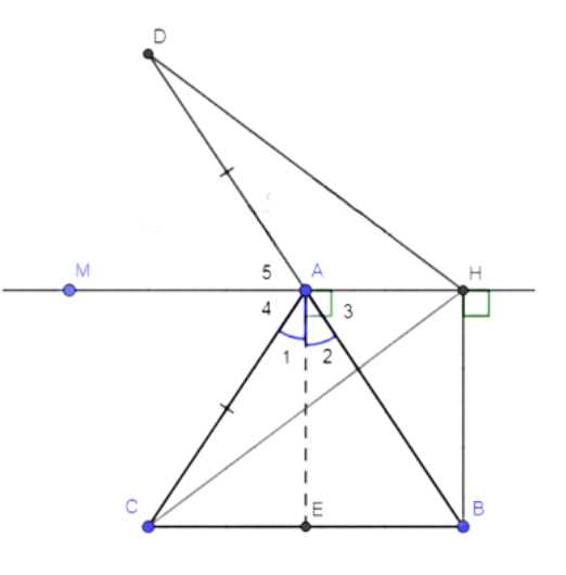 5. Рассмотрим углы DAH и CAH. Угол DAH равен 180 градусов минус угол 5, а угол CAH равен 180 градусов минус угол 4. Так как угол 4 равен углу 5, то углы DAH и CAH равны.