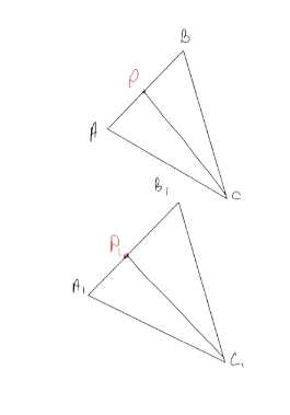 3. Рассмотрим треугольники BPC и B1P1C1. По условию BC = B1C1, PC = P1C1, угол A равен углу A1. Следовательно, треугольники BPC и B1P1C1 равны.
